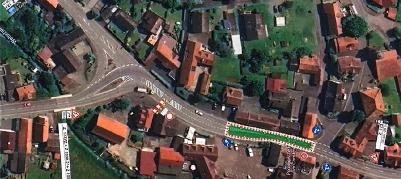 Aufgrund von Sanierungsarbeiten muss die Engstelle in Höhe der Marburger Straße 55 (ehemaliger Edeka-Parkplatz, siehe beiliegende Skizze) in Münchhausen voraussichtlich in der Zeit vom 05. bis 07. November 2025 voll gesperrt werden.